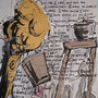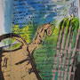 Mischtechnik auf Papier. Tusche, Öl, Graphit, Stoff, Papier.